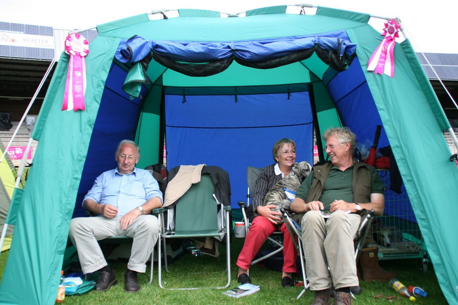 Wie immer in den letzten Jahren zog es uns am 1. Wochenende im August zum Windhund-Festival nach Donaueschingen. Als wir bei Starkregen am Freitag unser Zelt aufbauen mussten, stellten wir uns auf wenig gemütliche Tage ein. Aber Petrus hatte ein Einsehen und bescherte uns das richtige Windhundwetter.