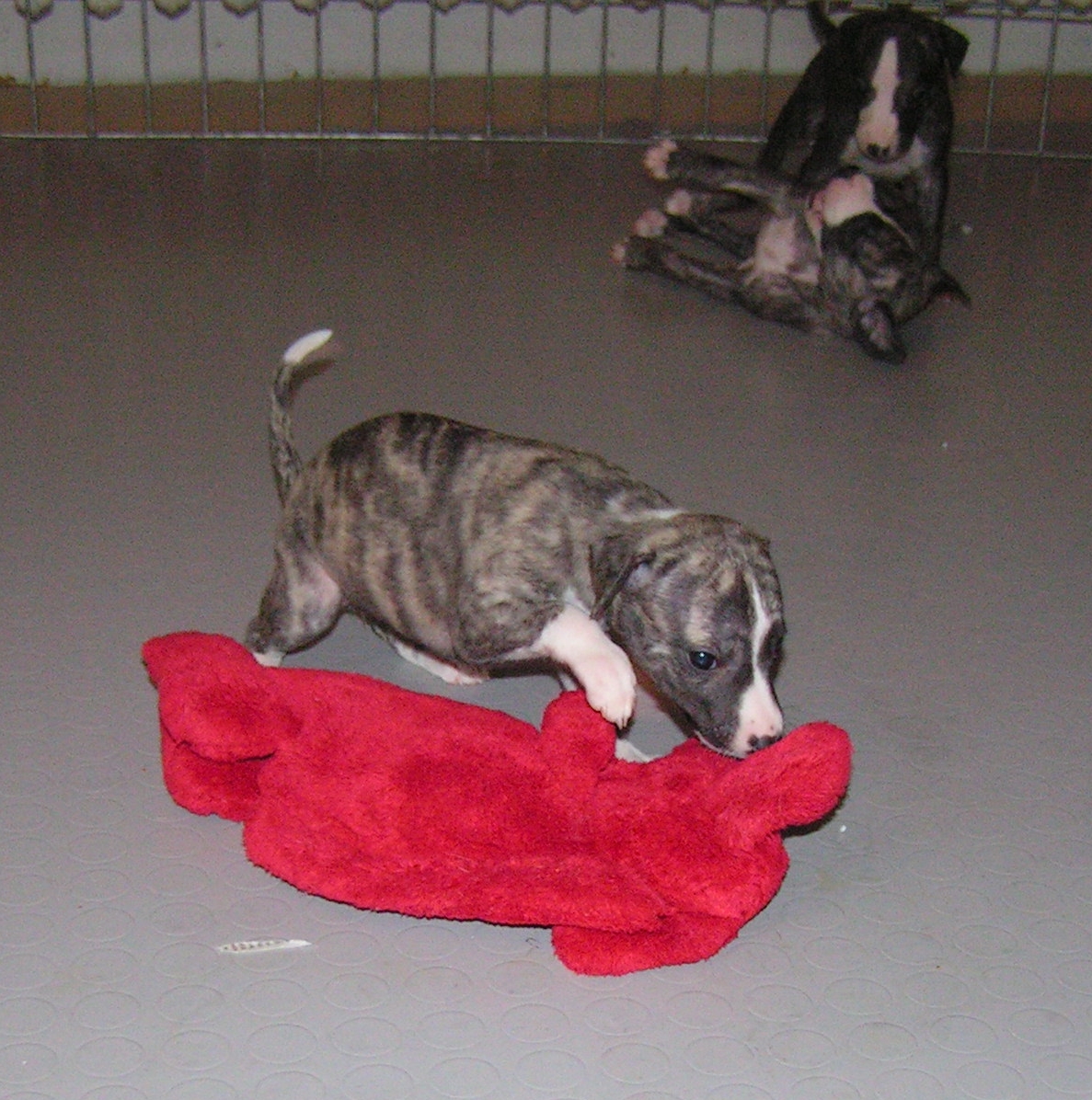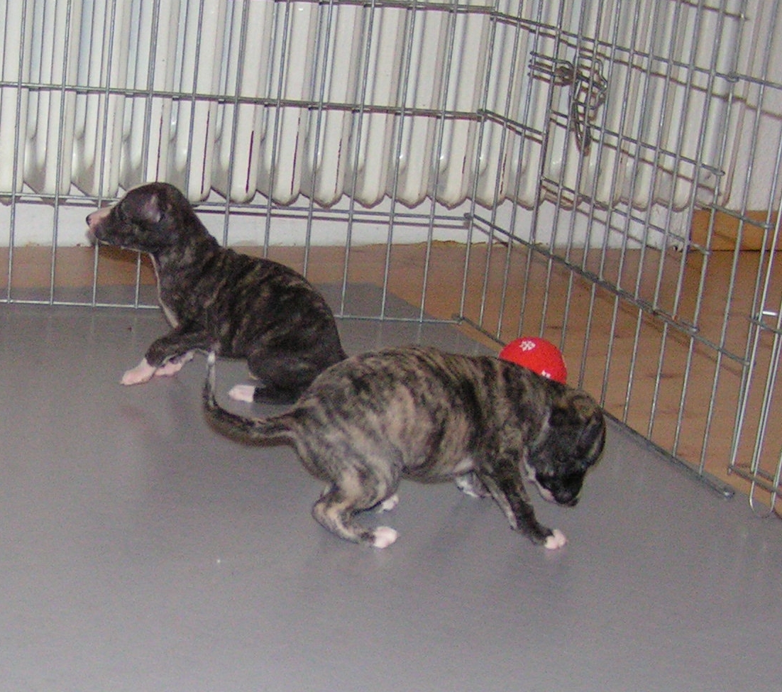 Die Wurfgeschwister sind Spielkameraden, mit denen man wunderbar toben kann. Erste Rangordnungsspiele verraten viel über Temperament und Charakter der Whippet – Babies.