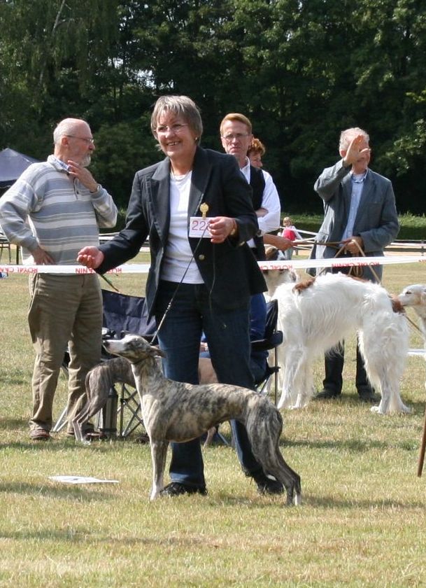 In der Windhund-Arena in Hünstetten fand am Samstag die CAC-Landessieger- Zucchtschau der L.Gr. Hessen-Thüringen statt. Bei Herrn H. Henne waren 57 Whippets gemeldet. Wir zeigten nur unsere Lola (Light my Fire HoE), die mit V1, CAC, VdH-A, BH, Landessiegerin ein tolles Ergebnis erzielte.