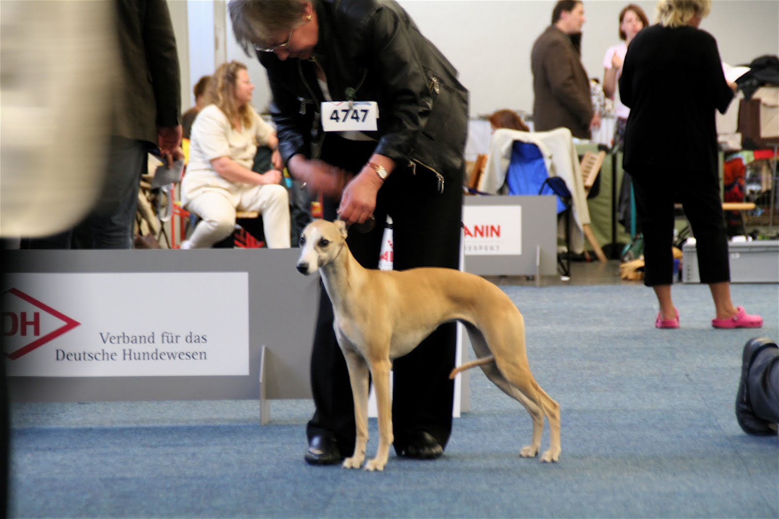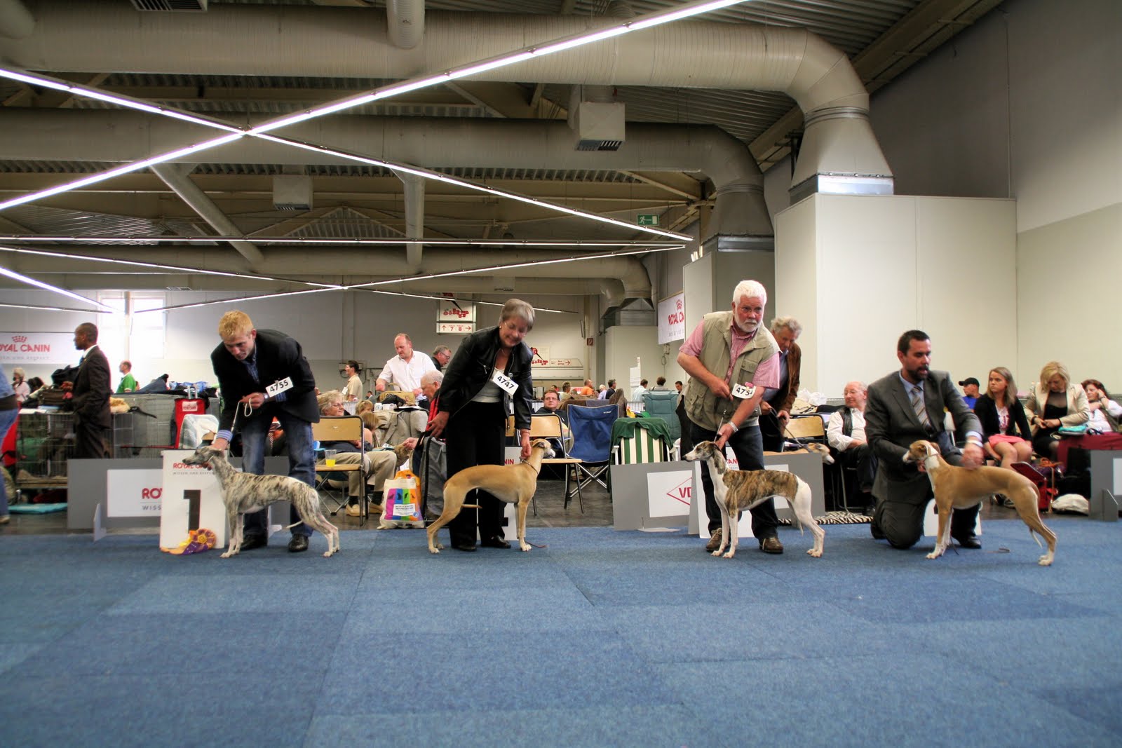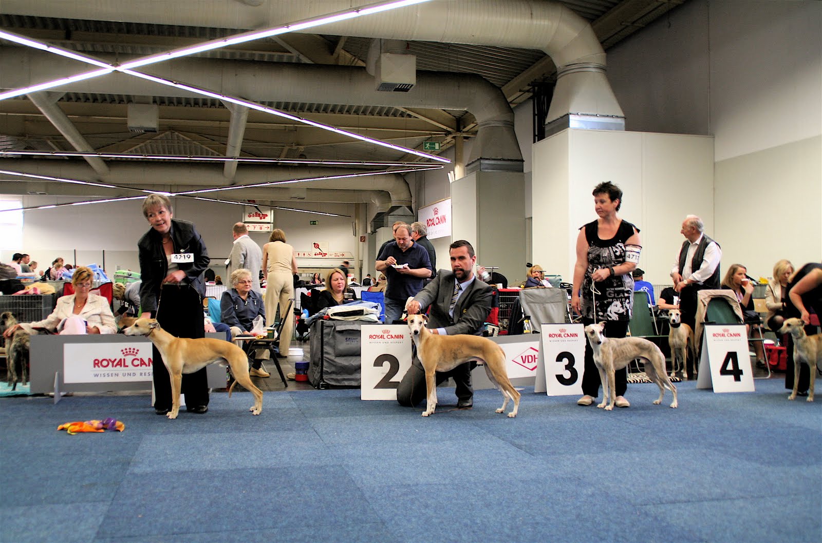 Frau Piisi – Putta/Finl. hatte fast 70 Whippets -davon 28 aus ausländischen Zuchtstätten- zu richten. Wir waren mit vier HoE- Whippets vertreten.