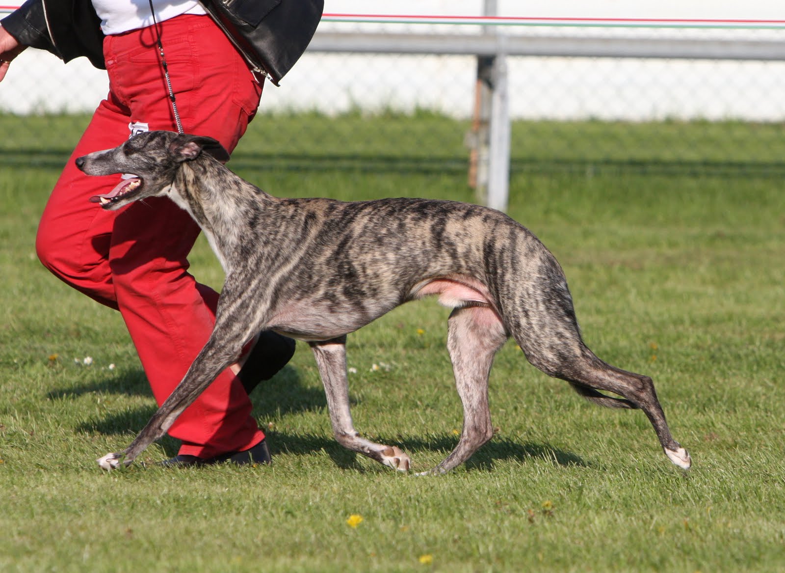 Auf der CAC – Zuchtschau in Oberhausen/Baden konnte unser Tommie (Hell’s Angel HoE) seinen bisher größten Erfolg erzielen. Unter dem Spezialrichter Herrn H. Henne gewann er zunächst das BOB (von 47 gemeldeten Whippets). Im Ehrenring machte ihn die bekannte schwedische Richterin Frau Thomassen zum Best in Show (BIS). Damit war er der Beste von ca. 280 gemeldeten Windhunden. Tommie wurde bisher auf 9 Ausstellungen gezeigt und konnte folgende Resultate erreichen: