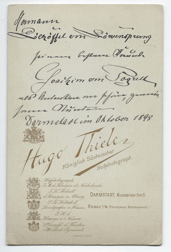 Ab 1865 entwickelte sich zunehmend die sog. Studiophotographie und bald kam die carte de visite – eine Art bebilderte Visitenkarte – in adligen und großbürgerlichen Kreisen in Mode. Nicht selten waren auf ihnen auch Hunde abgebildet. Einige Beispiele sollen hier veröffentlicht werden: